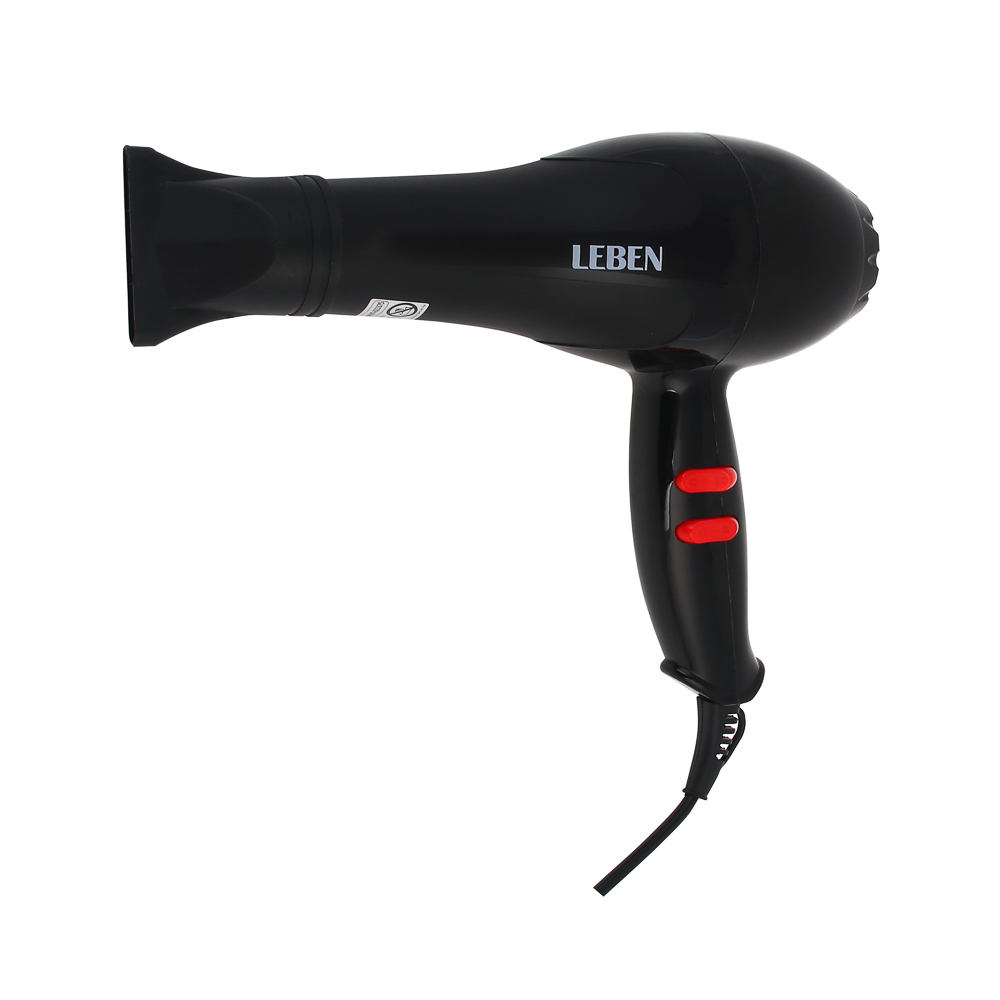 Фен LEBEN мощностью 900 Вт сочетает компактность и эффективность, обеспечивая быстрый и бережный уход за волосами. Два режима скорости и две температурные настройки позволяют подобрать оптимальный поток воздуха для сушки и укладки, предотвращая перегрев и повреждение волос. Съёмный концентратор концентрирует поток воздуха, создавая аккуратную укладку и придавая волосам гладкость и блеск. Эргономичный корпус удобно держать в руке, а стильный черный дизайн делает фен практичным и современным аксессуаром для ежедневного использования дома или в поездках.