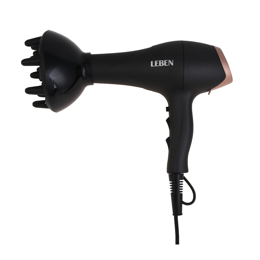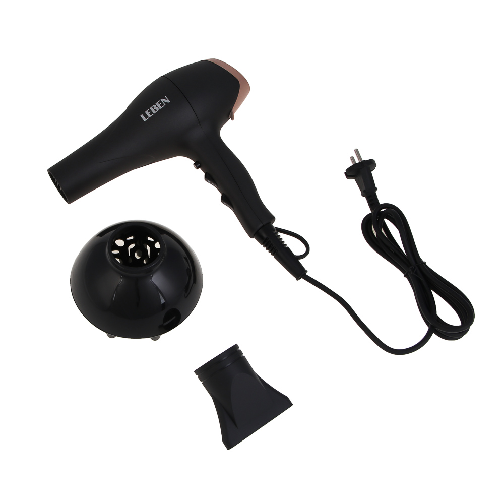 Фен LEBEN сочетает мощность, функциональность и современные технологии для качественного ухода за волосами. Оснащён AC мотором и максимальной мощностью 2400 Вт, он обеспечивает быструю сушку и долговечность устройства при ежедневном использовании. Модель поддерживает ионизацию, которая уменьшает статическое электричество, делает волосы гладкими, блестящими и послушными. Для комфортной и точной укладки предусмотрено 2 скорости и 3 температурных режима, что позволяет подобрать оптимальный режим для любого типа волос.