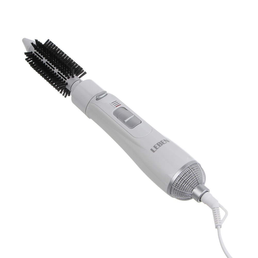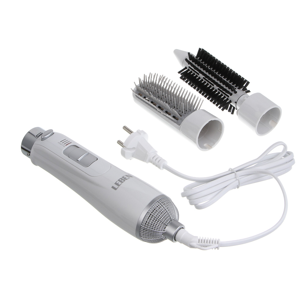 Фен-щетка LEBEN мощностью 1000 Вт объединяет функции фена и стайлера, позволяя сушить и укладывать волосы одновременно. Три температурных режима помогают подобрать оптимальный поток горячего воздуха для разных типов волос, предотвращая пересушивание и повреждение. В комплекте две насадки для создания разнообразных причесок: выпрямление, лёгкие локоны или придание объёма. Эргономичный корпус удобно держать в руке, а продуманный дизайн обеспечивает равномерное распределение тепла.
