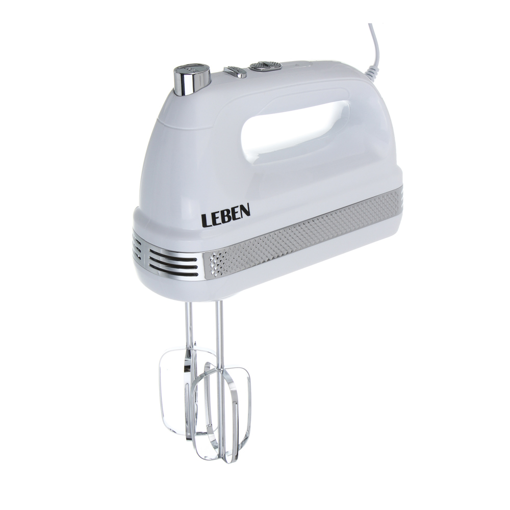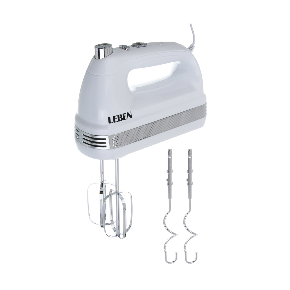 Мощный LEBEN электрический миксер — надежный и универсальный помощник на кухне для приготовления разнообразных блюд. Устройство с мощностью 800 Вт позволяет легко справляться с тяжелыми тестами, кремами и другими ингредиентами, обеспечивая быстрый и качественный результат. Миксер оснащен 5 скоростями и дополнительным режимом TURBO, что дает возможность выбрать оптимальный режим для любых кулинарных задач. В комплект входят 2 насадки для взбивания и 2 насадки для смешивания, выполненные из прочной нержавеющей стали, устойчивой к коррозии и долговечной в эксплуатации. Корпус миксера изготовлен из качественного пластика, что делает прибор легким, удобным в использовании и простым в уходе.